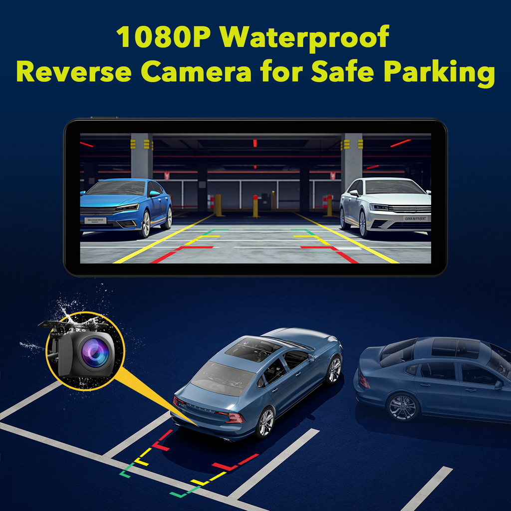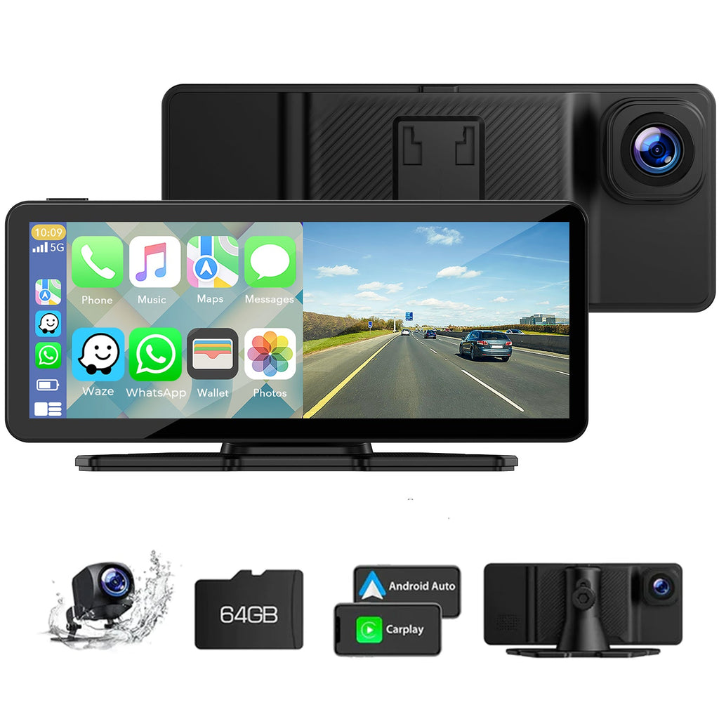 【2.5K Front + Rear 1080P Dual Camera Dash Cam】The car screen is equipped with front 2.5K front camera + 1080P waterproof backup camera, with dual-screen recording capabilities and 170°viewing angle, support to night vision and loop recording, giving you a clear and accurate record of your journeys.(Tips: Included a 64G TF card, needn't purchase separately)