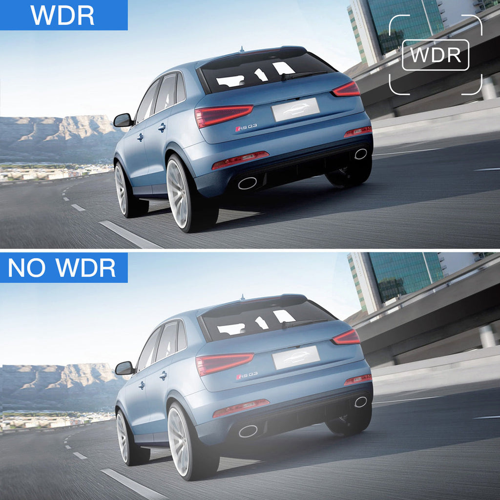 With the technology of a wide dynamic range built-in, the dual dash cam will automatically optimize video quality with wider light range and image details. It ensures that the footage will not be too bright in sun or too dim in dark surroundings.
