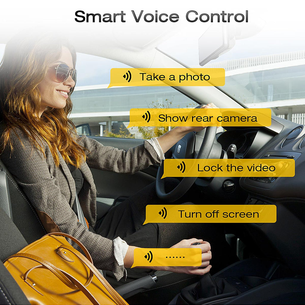 - 【Voice Control Commands】 - The car camera with voice commands to operate basic setting while driving, no need to touch the screen. You speak, it listen and follow your command, offering you a safer and more comfortable driving experience.