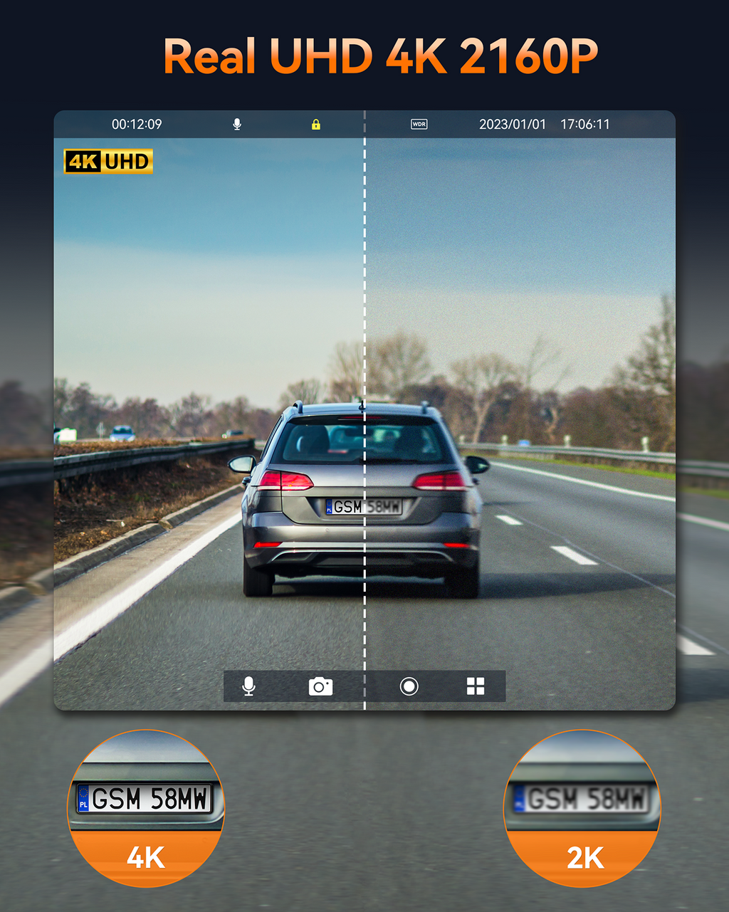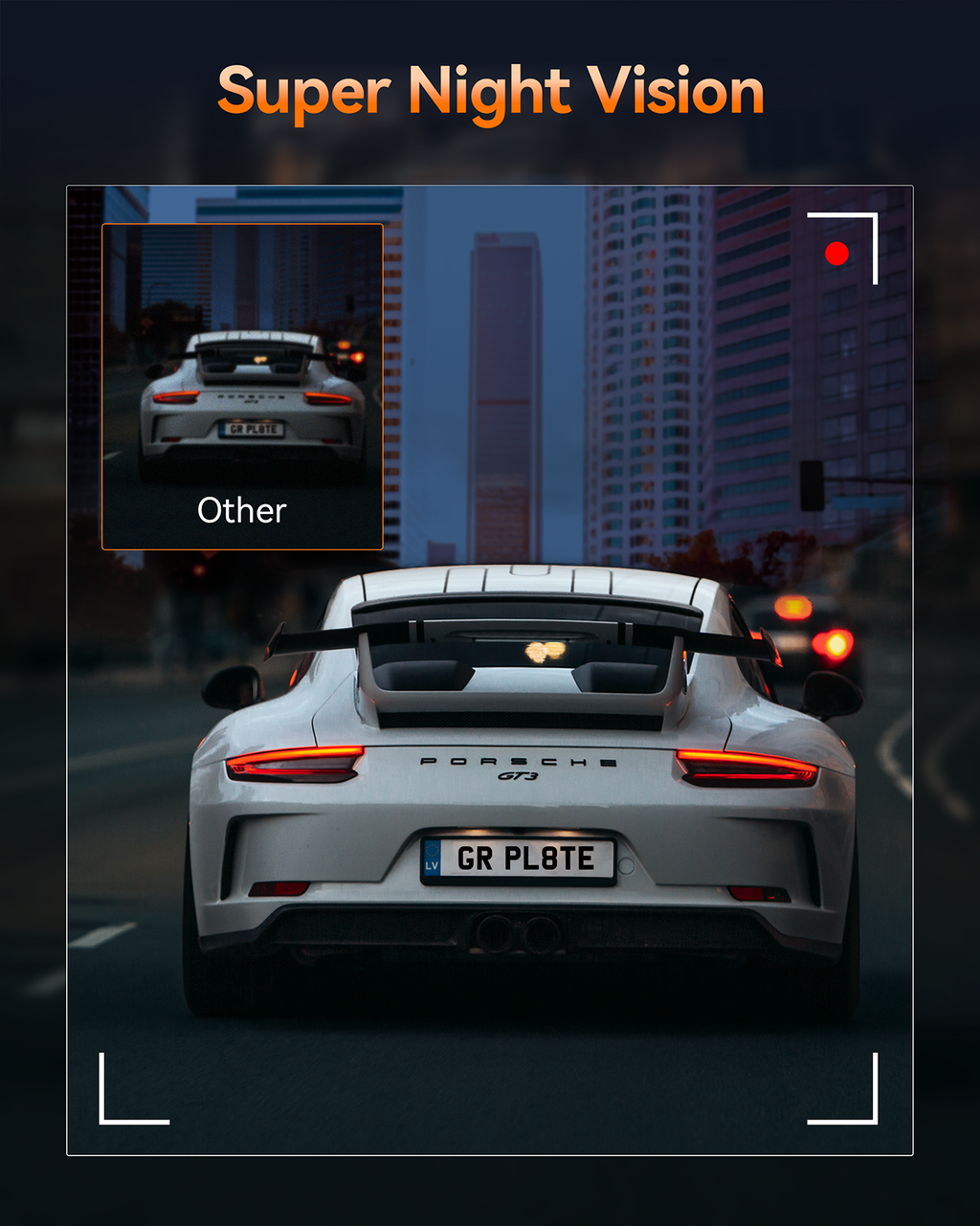 6-layer optical lens design, equipped with 4K+1080P front and rear high-definition resolution, can record clear images and videos for you no matter in day or night.