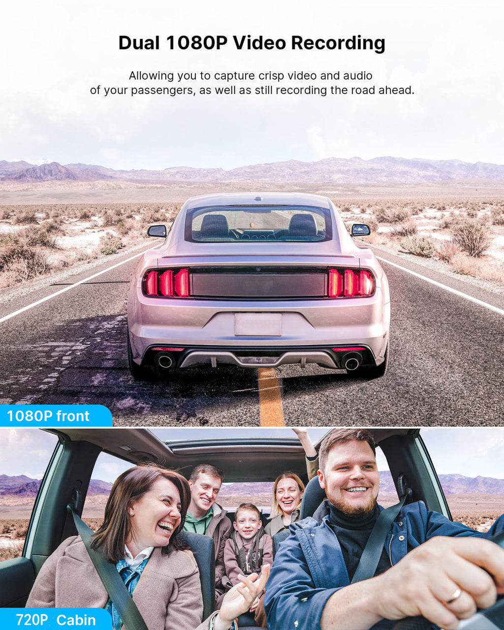 【Front + Interior Dual 1080P dash camera】 The dashcam can simultaneously record front and interior of the car with 1080 FHD video and audio. The dash cam can provide crisp and clear video evidence in the event of a car accident or dispute while driving, driving more at ease.