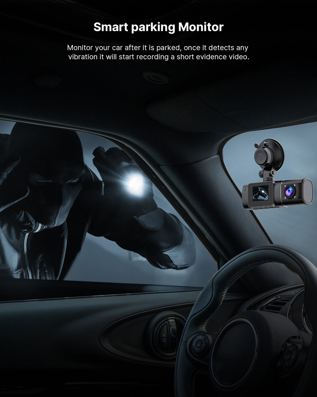 When an intruder wanders around your car, the dash camera automatically turns on and starts recording during parking.