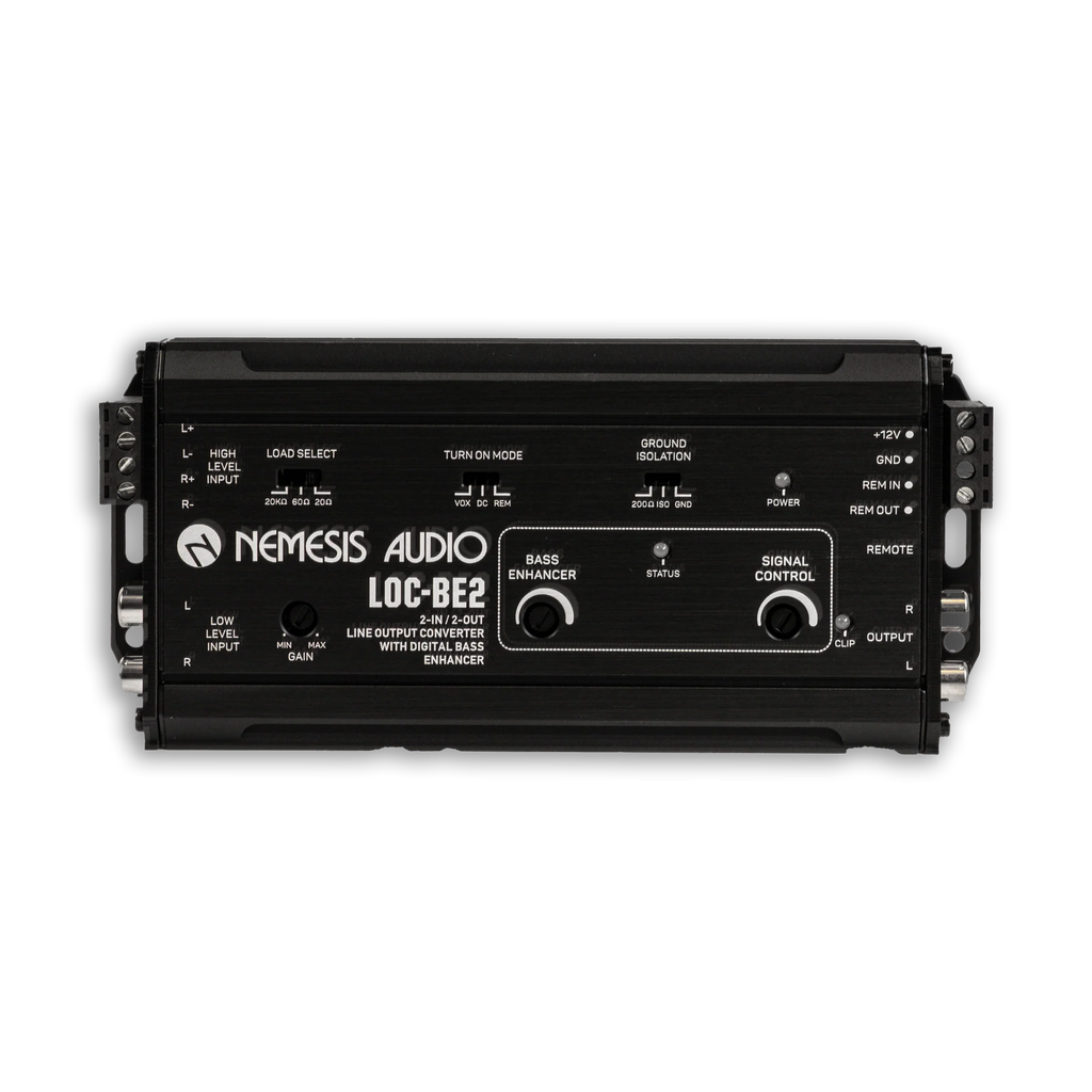 • Load selection switch (20, 60, or 20K ohms) to prevent factory stereo shut-down