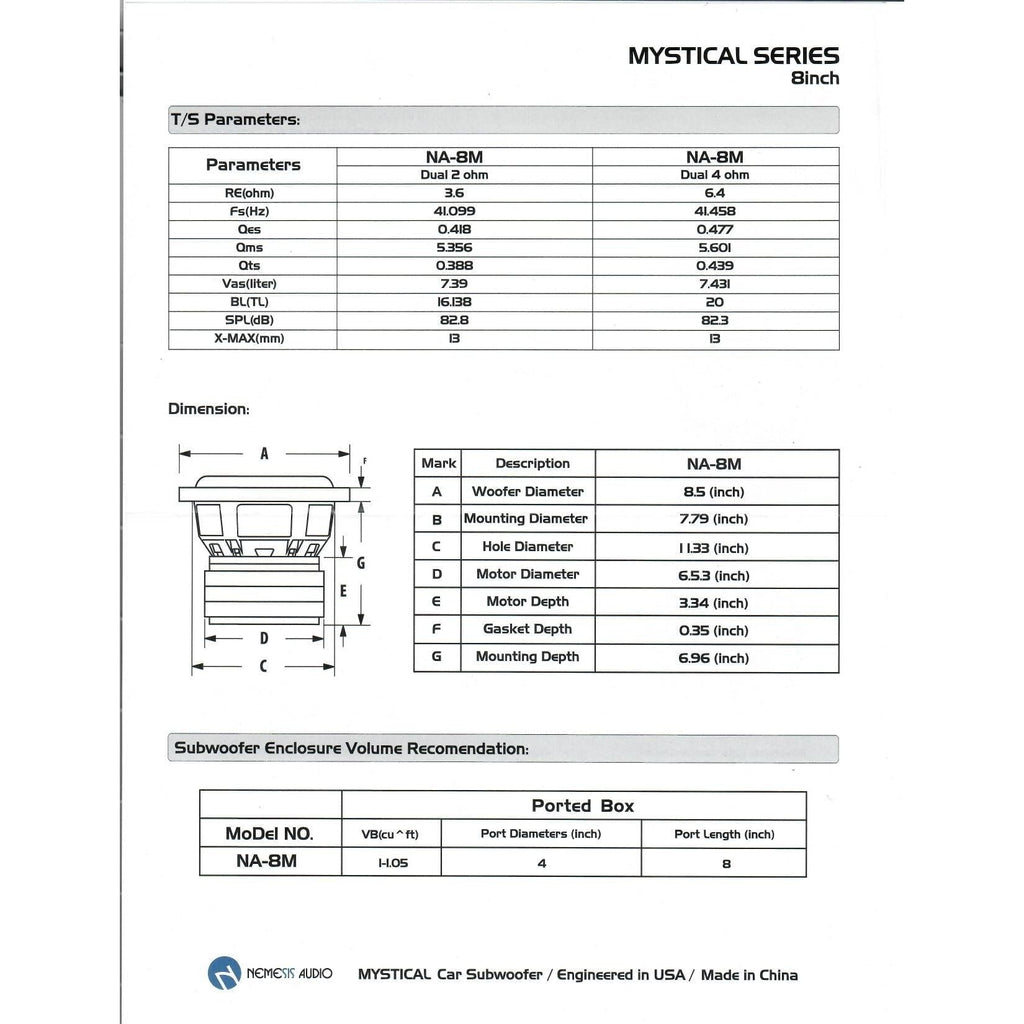 Nemesis Audio NA-8M 8" 700W RMS Subwoofer DVC