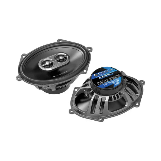 The COBALT series 6x8" Coaxial 3-Way Speakers from Orion are expertly crafted to provide a superior audio experience in your vehicle. These speakers fit seamlessly into many standard factory speaker slots, especially in larger door panels or rear decks, making them an ideal choice for both replacement and upgrades. The three-way coaxial design encompasses a tweeter for delivering crisp high frequencies, a midrange driver that articulates vocal and instrumental details, and a woofer that produces deep, resonant bass. This configuration ensures a dynamic and well-balanced sound across various music genres.