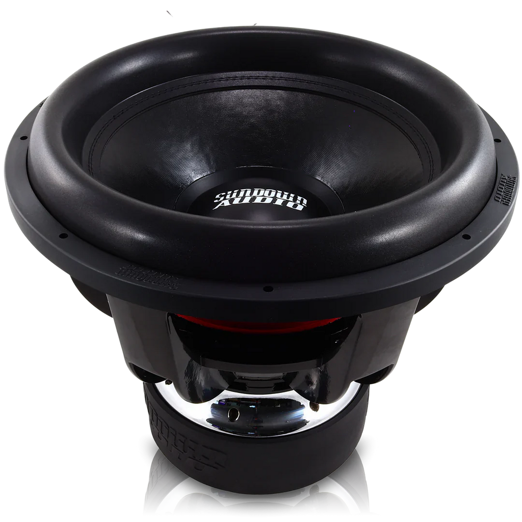 Designed in-house by Sundown Founder Jacob Fuller, the 3,500-watt RMS SDDN is available in 10, 12, 15, and 18-inch models. Each unit boasts a massive 83-pound motor with integrated thermal ventilation, featuring a custom cross-cut pole piece with a Neodymium cap for increased output and thermal control. Sundown’s signature Mega V2 cone is paired with a five-layer spider, a 3.3” x 80mm aluminum voice coil (dual 1-ohm), and dual tinsel leads per eight-gauge terminal.