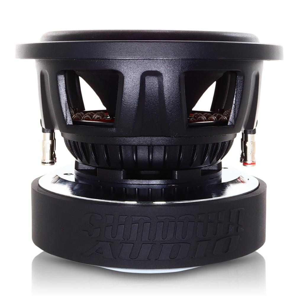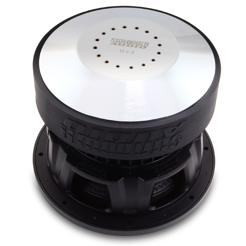 Designed to be at home in the competition lanes or playing your favorite music, the U Series is the premier “standard suspension” woofer in the Sundown lineup. A double-stacked 9.4-inch wide ferrite magnet system is coupled to a thick top plate. A thick set of shorting rings are used inside the magnets and on the pole cap, smoothing out frequency response while doubling as a heat sink and airflow guide. A custom, substantially thicker aluminum frame was designed specifically for the U Series, equipped with heat dissipation ribs. The U v.2 motor also features an extended pole piece to keep the coil under perfect control under high stress. The coil temperature is kept in check via a high-velocity solid pole / machined pole channels arrangement and a series of 16 direct air-gap vents in the back plate.