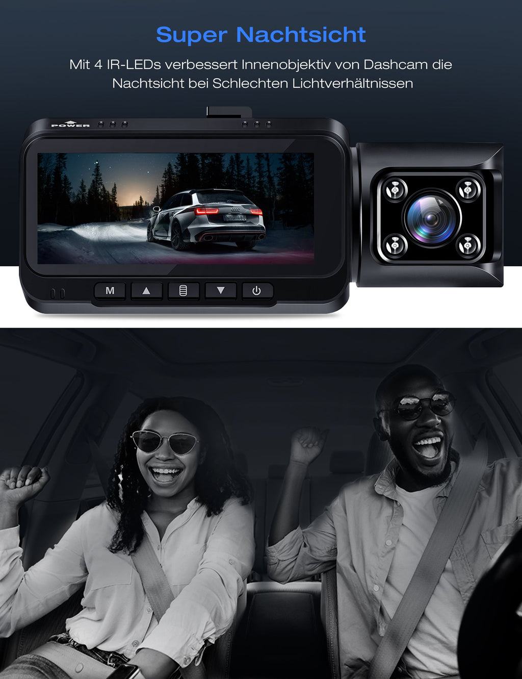 The 2 channel dash cam records 4K UHD 3840*2160@30fps front and 1920*1080@30fps cabin simultaneously. Provide adequate enough vivid image and video for you make out license plate and street signs in day and night.